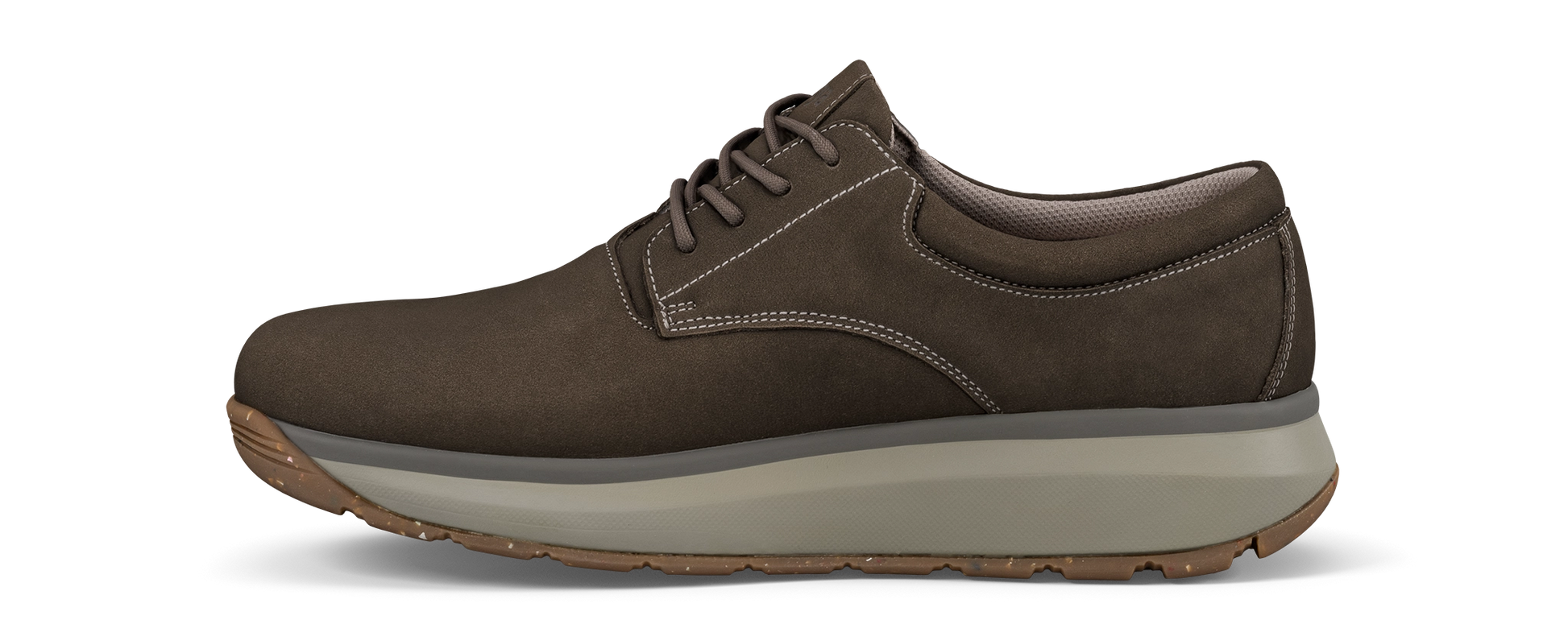 حذاء ديربي كلاسيكي من جلد النوبوك الغني والقوي مع مقدمة عادية وبطانة شبكية مبطنة بسلاسة لراحة فائقة في مقدمة القدم. يتميز بتقنية النعل Joya Senso التي تضمن تأثير توسيد ممتاز وتوزيع ضغط متوازن وتوفر راحة مثالية وتخفيفًا للإجهاد اليومي للظهر والمفاصل والقدمين.