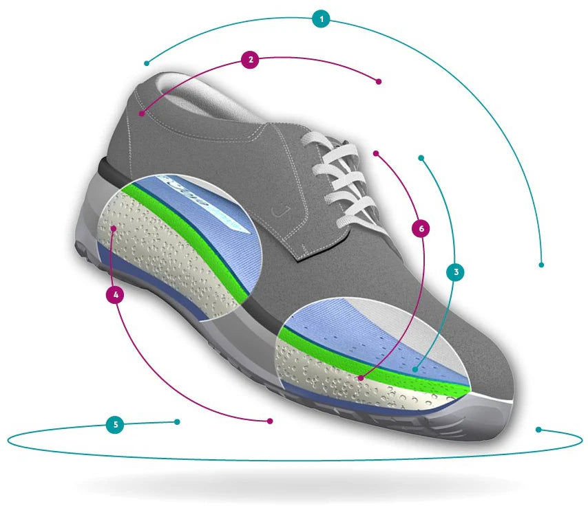 Patented technology developed by an innovative Swiss company with a long standing tradition in the comfort shoe segment.