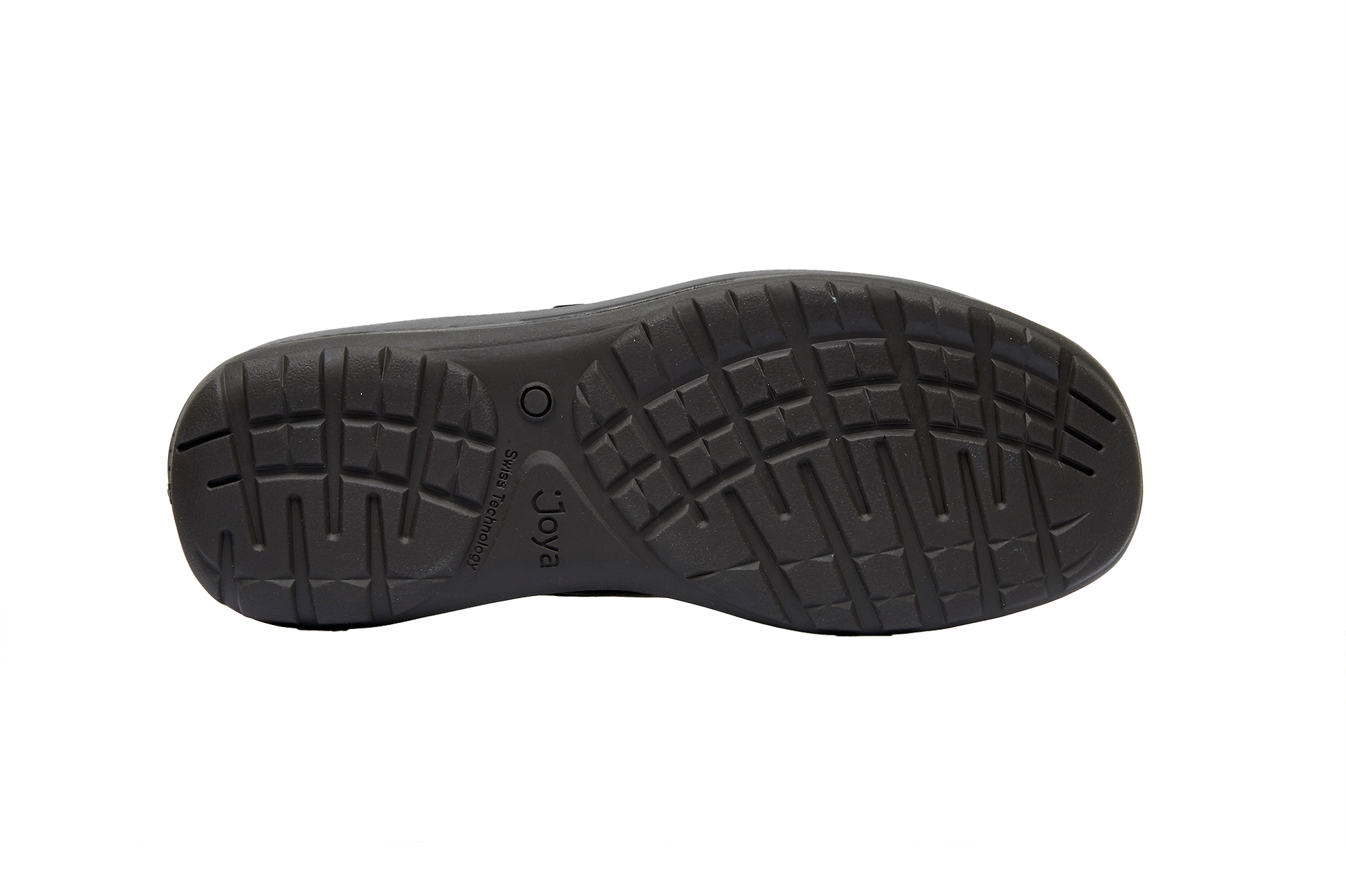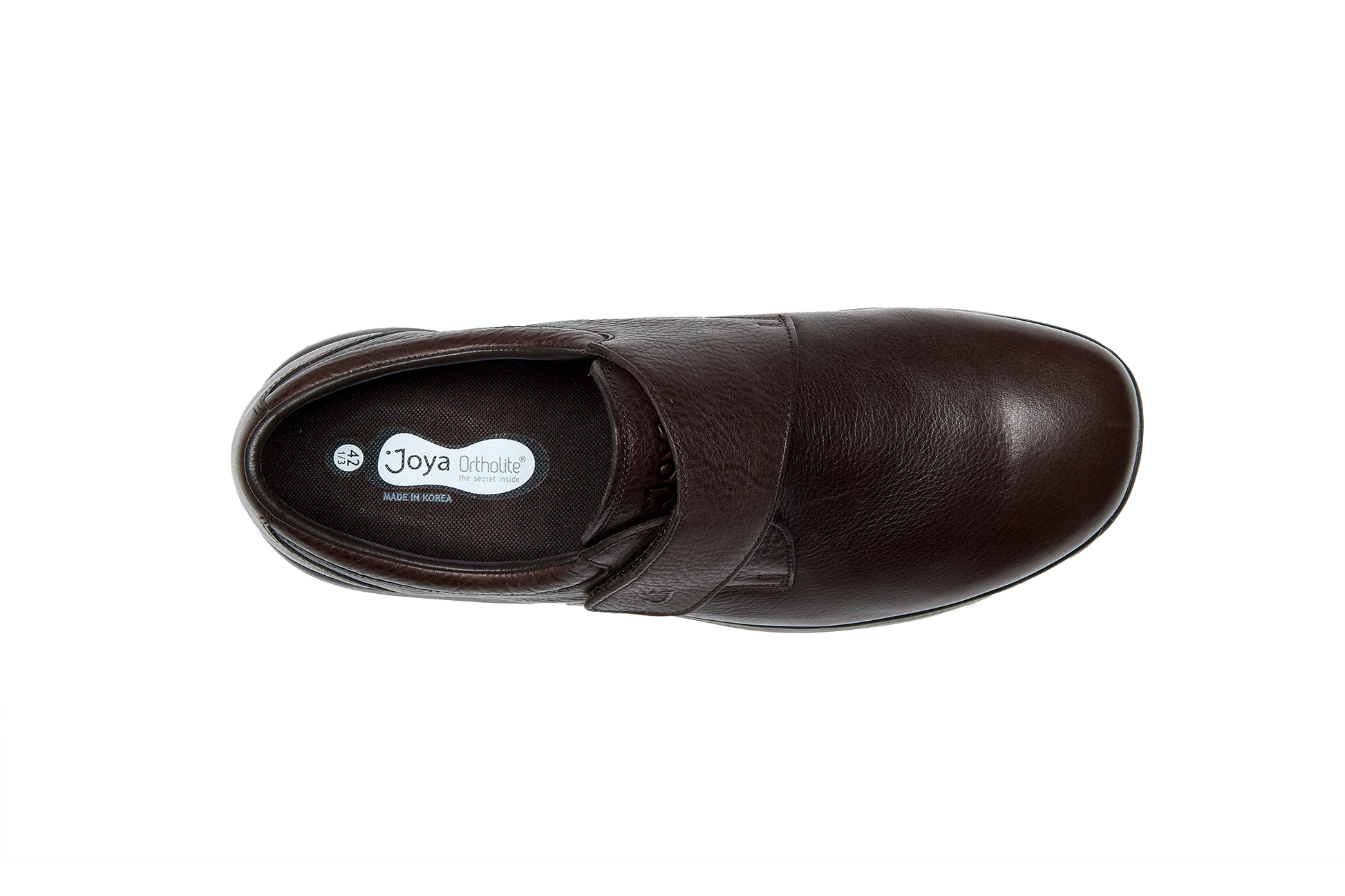 Full grain leather derby shoes with instep velcro closure, plain toe and smoothly padded mesh lining for superlative forefoot comfort. Featured with the Joya Senso sole technology that ensures excellent cushioning effect and balanced pressure distribution and delivers optimum comfort and relief for your back, joints and feet daily stress.
